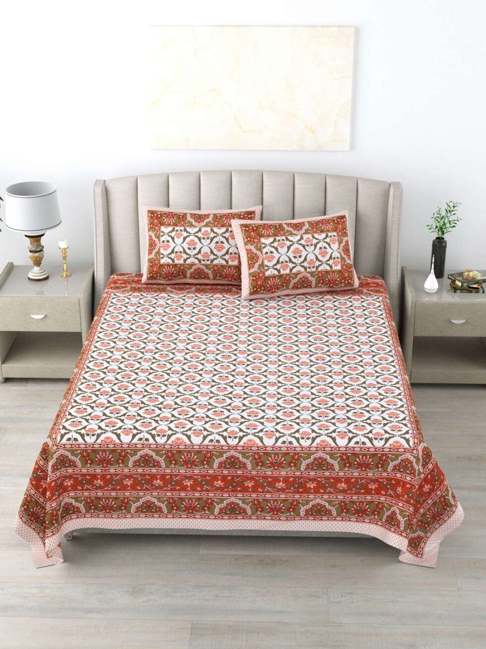 100% Pure Cotton Traditional Printed Bedsheet for Double Bed King Size Bedsheet with 2 Pillow Covers