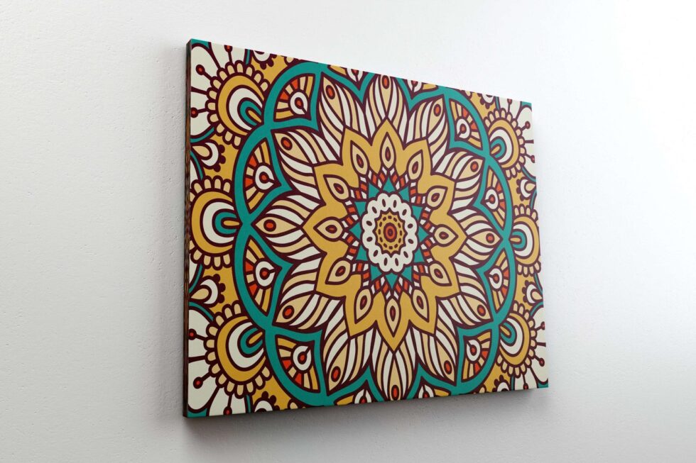 Round golden frame painting that exudes luxury, perfect for upscale hotels.